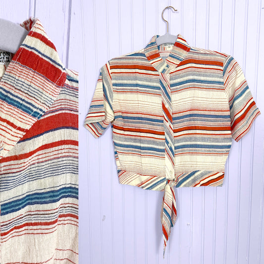 Deadstock 70's Striped Cotton Crop Tie Tops