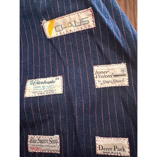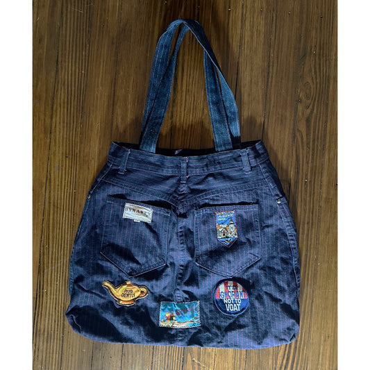 Vintage Handmade Pinstripe Denim / Jeans Tag Patchwork Bag Tote