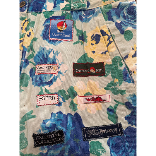 Vintage Handmade Floral Denim / Jeans Tag Patchwork Bag Tote