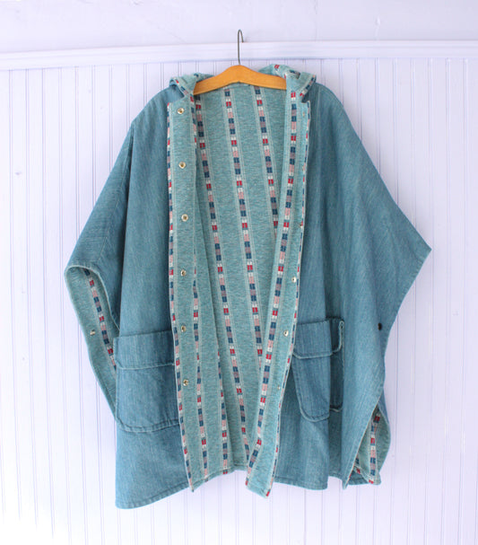 Sold outDenim Poncho Jacket Geometric Lining