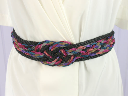 80's Black and Multicolor Woven Rope Cinch Belt